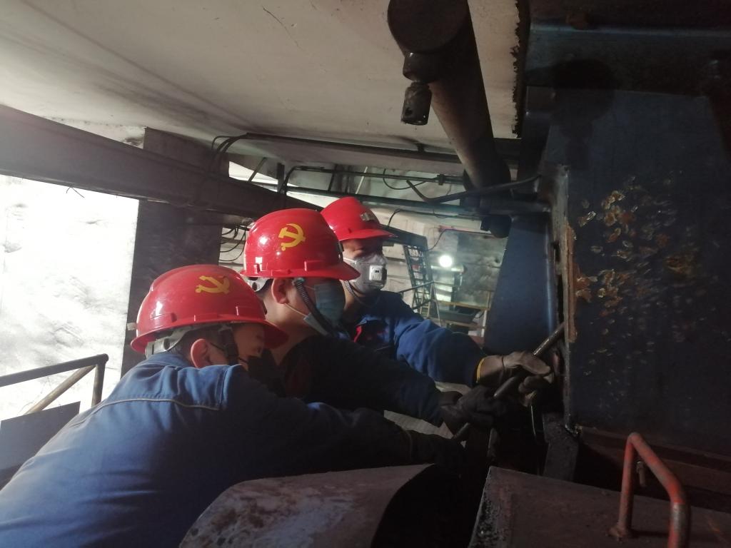 這一幕是渦北選煤廠生產(chǎn)班班長正在安排一項“苦臟累”的突擊任務。渦北選煤廠有六個萬噸級原煤倉,24落煤倉眼,由于春節(jié)長假,潮濕的原煤在水與泥的作用下,在倉壁上面板結(jié)硬化形成一個“假底”,高高的懸空蓬死在原煤倉內(nèi),猶如筑城的夯土,倉內(nèi)空氣炮也奈何不了它們。眾所周知,捅倉這活是又臟又累,而且有時候忙了一天都捅不下來一個倉眼,上萬噸原煤就在倉里,卻無法正常進入生產(chǎn)系統(tǒng),生產(chǎn)處理量無法穩(wěn)定,質(zhì)量控制難以保證,生產(chǎn)能耗不斷增加。當天,三名黨員與蓬倉眼進行了一場頑強的搏斗,最終把蓬倉貫通,為原煤穩(wěn)定洗選創(chuàng)造了重要條件。