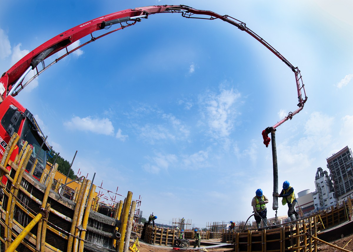 泵車正在澆注聚能發電公司機組項目鍋爐承臺短柱