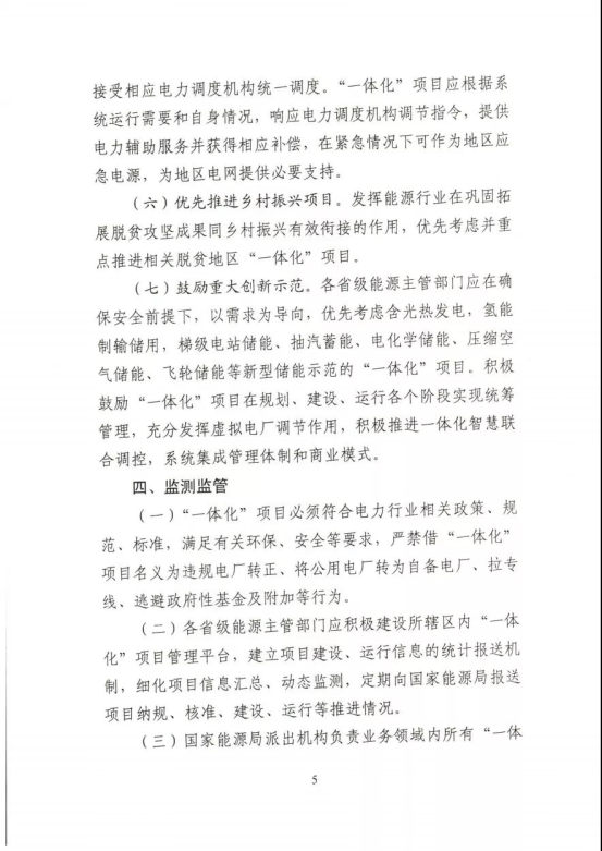 “一體化”項目接受相應電力調度機構統一調度。“一體化”項目應根據系統運行需要和自身情況,響應電力調度機構調節指令,提供電力輔助服務并獲得相應補償,在緊急情況下可作為地區應急電源,為地區電網提供必要支持。原文見下: