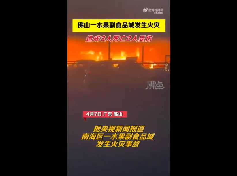 2022年4月7日凌晨1時許,廣東省佛山市南海區獅山鎮羅村華南水果副食品城發生火災事故。事故共造成3人死亡,2人受傷。